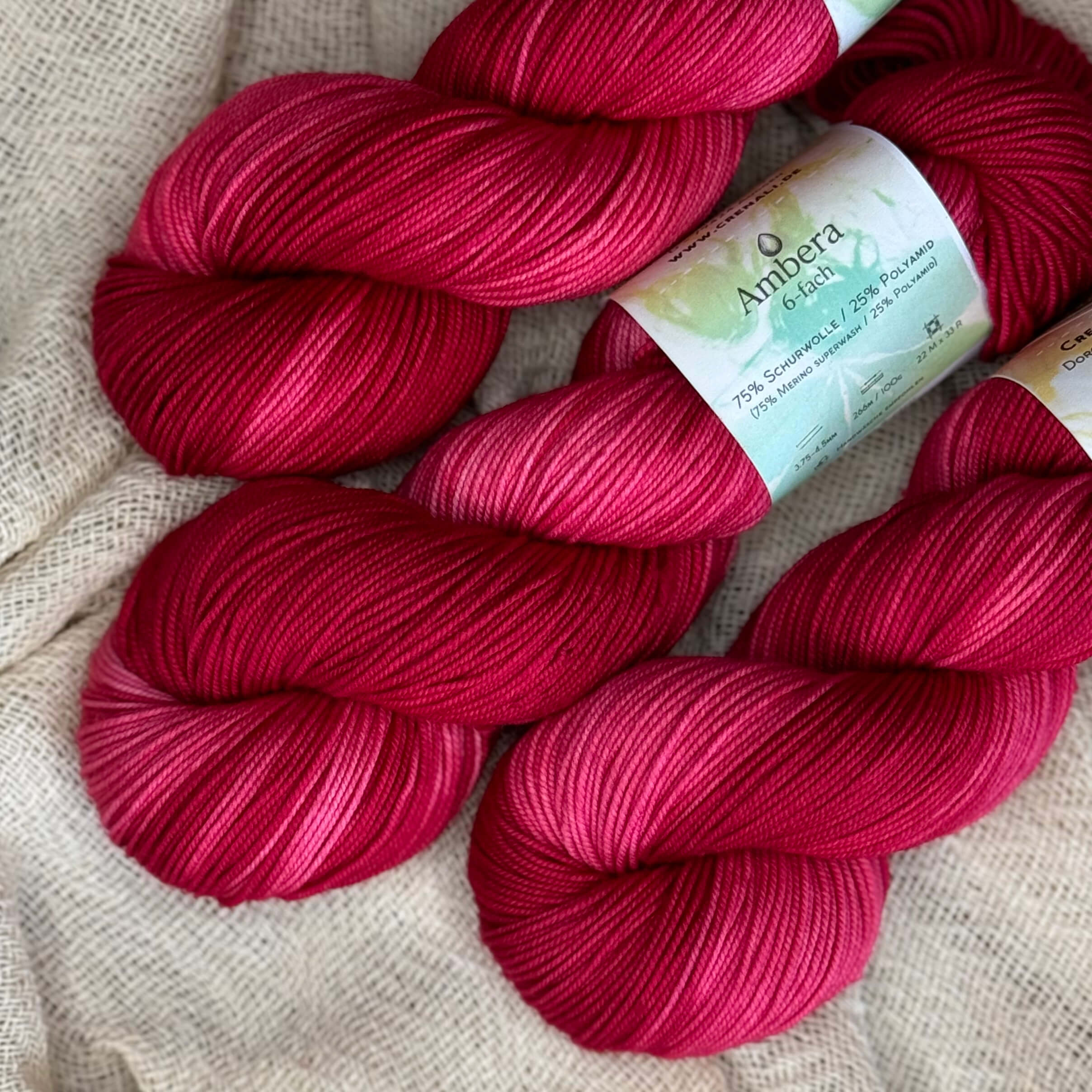 Fruchtig, lebendig und voller Charme – Ambera 6-fach in Himbeere bringt frischen Schwung in deine Strickprojekte.