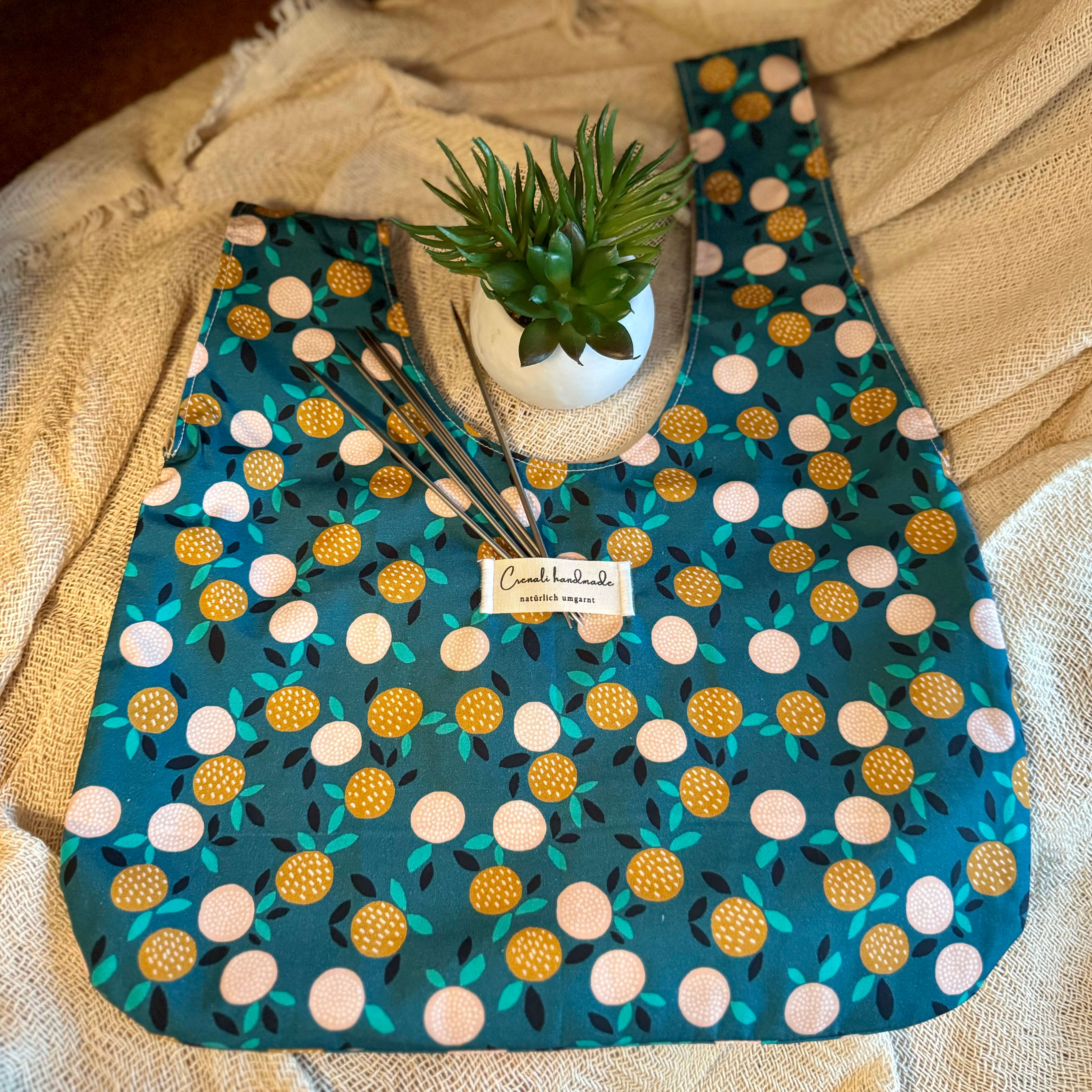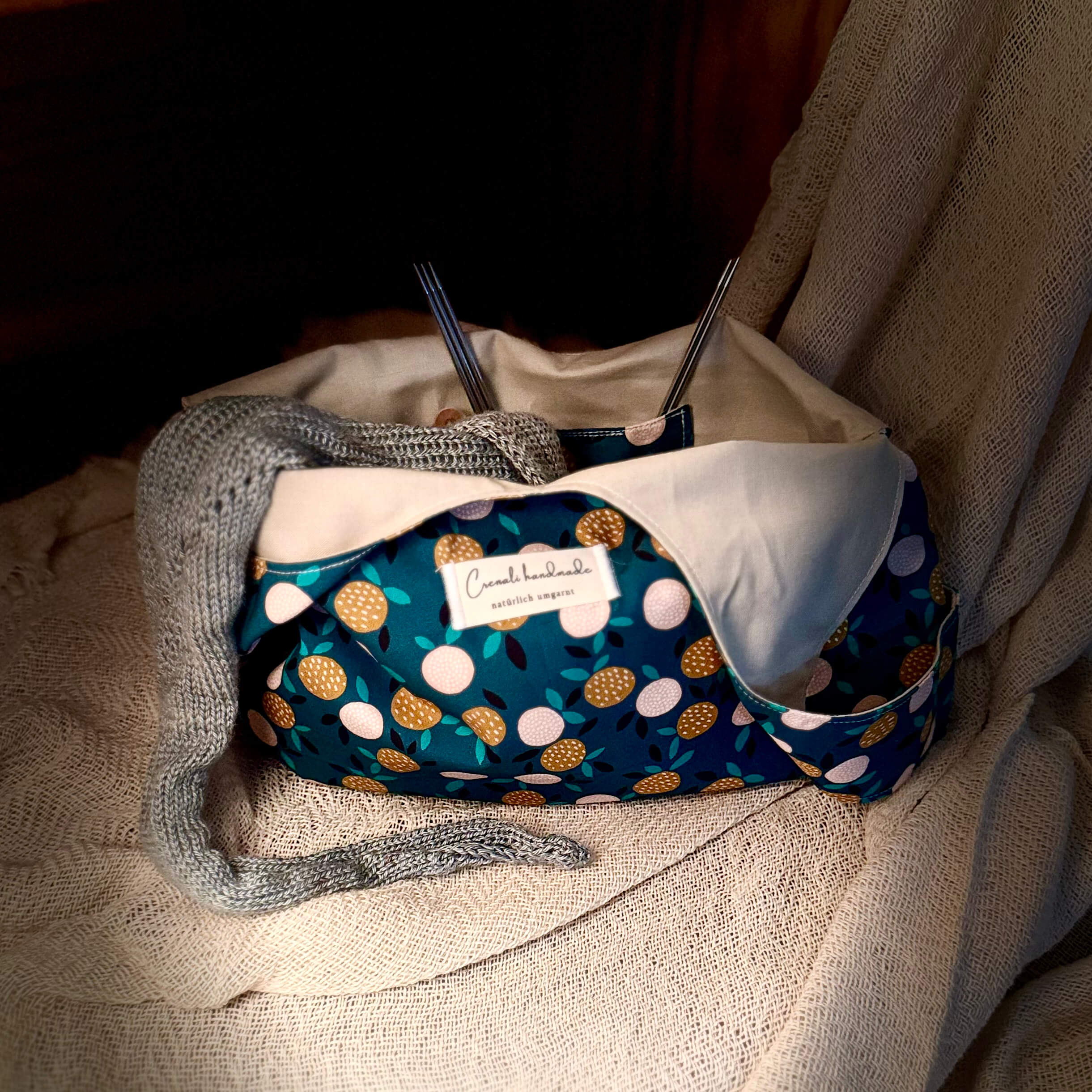 Ob unterwegs, beim Stricktreffen oder im Alltag – die Knotentasche Früchtetanz ist dein farbenfroher Begleiter und bringt Ordnung mit Stil. Besonders schön: In Kombination mit den passenden Nadelgaragen im gleichen Design entsteht ein harmonisches Set, das Freude schenkt und ein echter Hingucker ist.