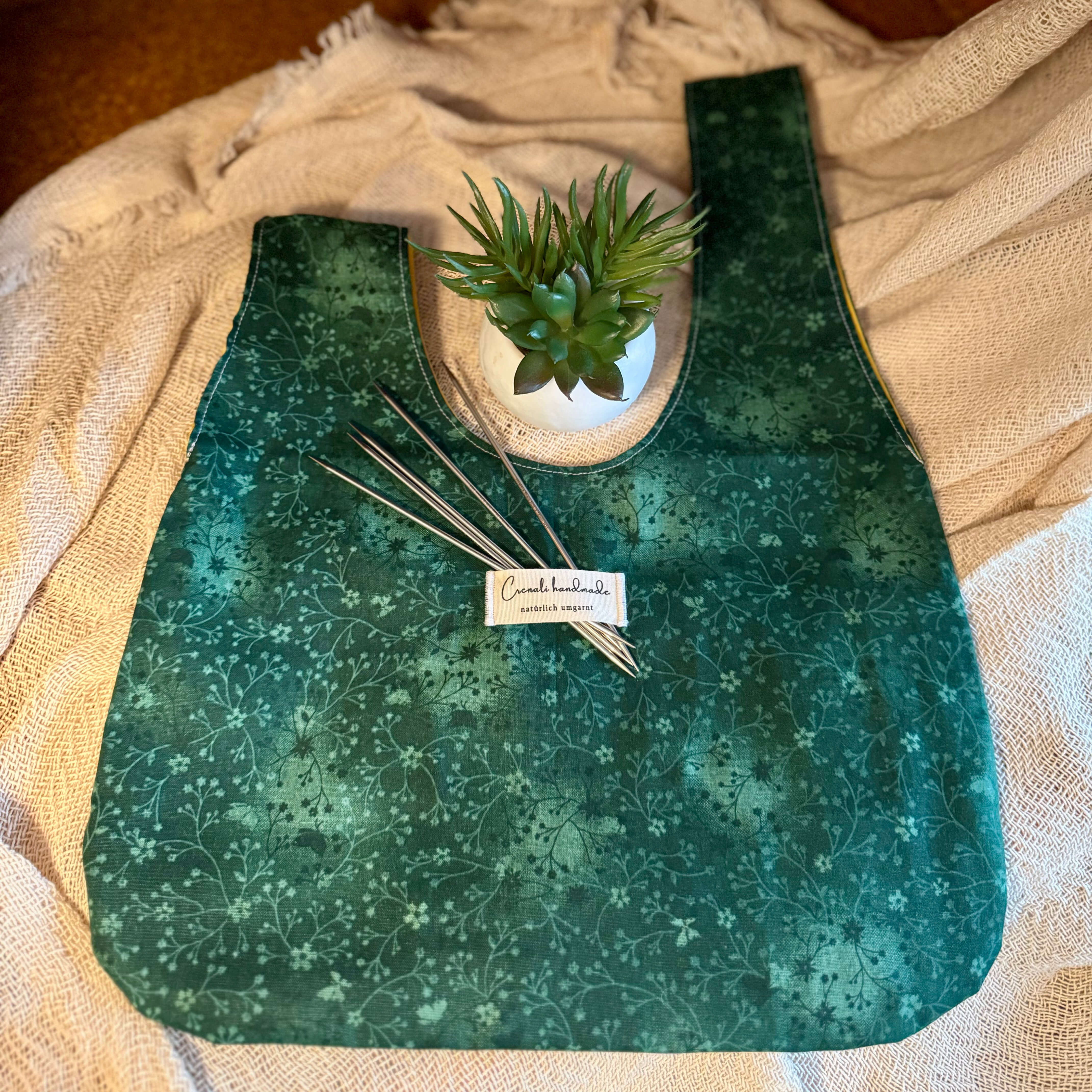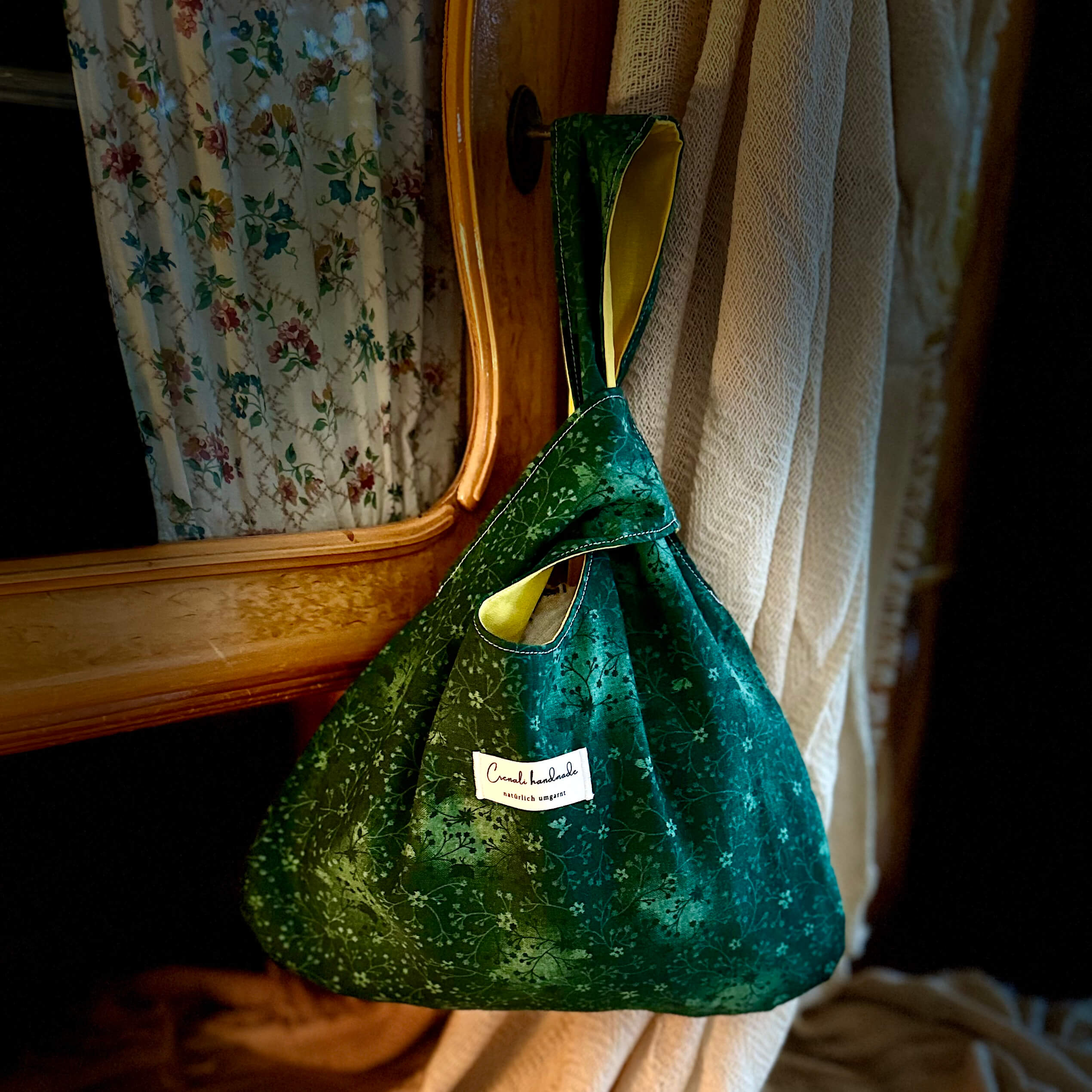 Natürlich, elegant und ein kleines Stück Waldgefühl – unsere japanische Knotentasche im Design Moosranke bringt Ruhe und Harmonie in deine kreative Auszeit. Handgenäht aus 100% Baumwolle (Innen- und Außenstoff) ist sie robust, leicht und angenehm zu tragen.
