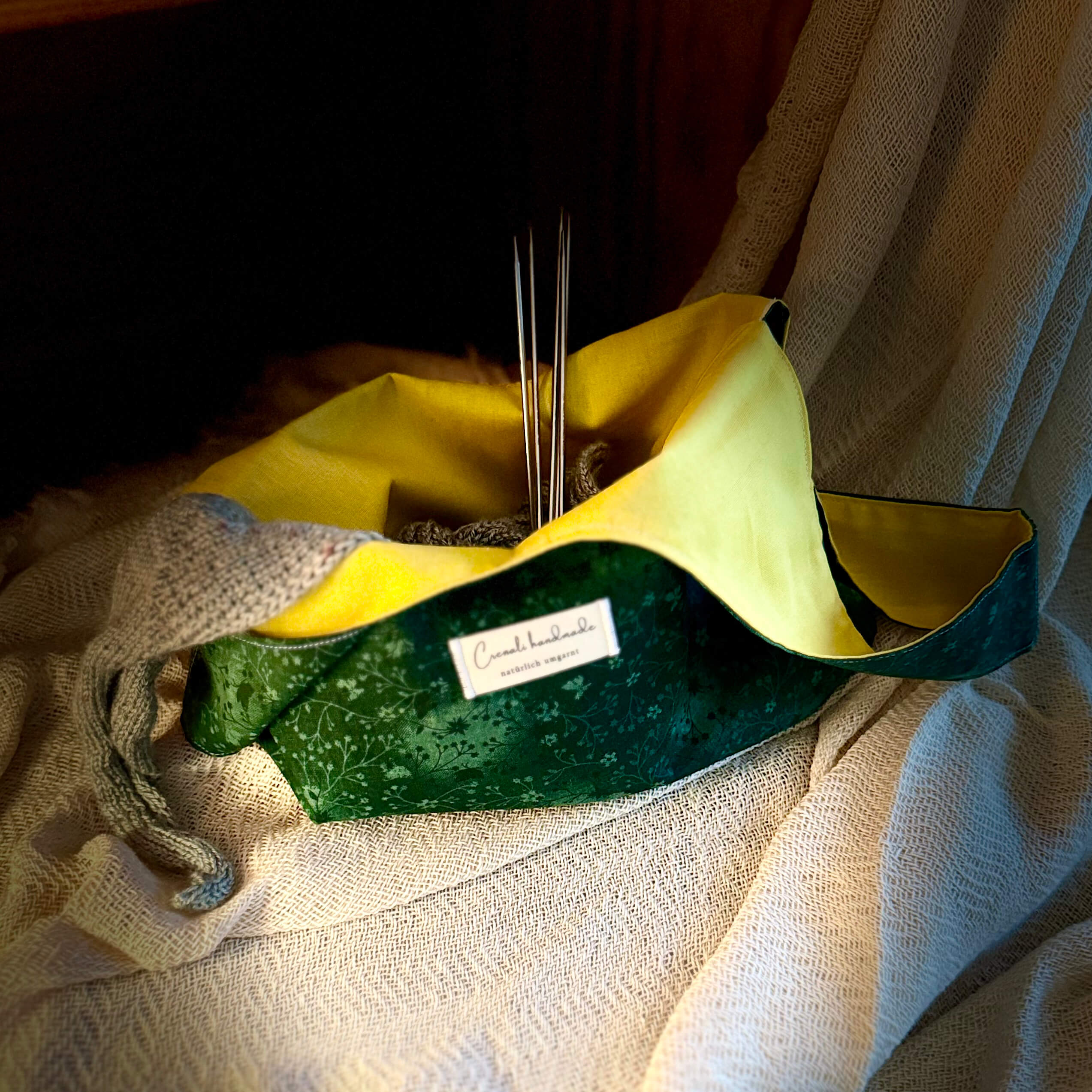 Die Knotentasche Moosranke ist nicht nur ein funktionaler Begleiter für kreative Momente, sondern auch ein stilvolles Accessoire, das mit seinem naturverbundenen Design besticht. In Kombination mit den passenden Nadelgaragen im gleichen Design entsteht ein harmonisches Set, das Ordnung und Stil perfekt vereint.