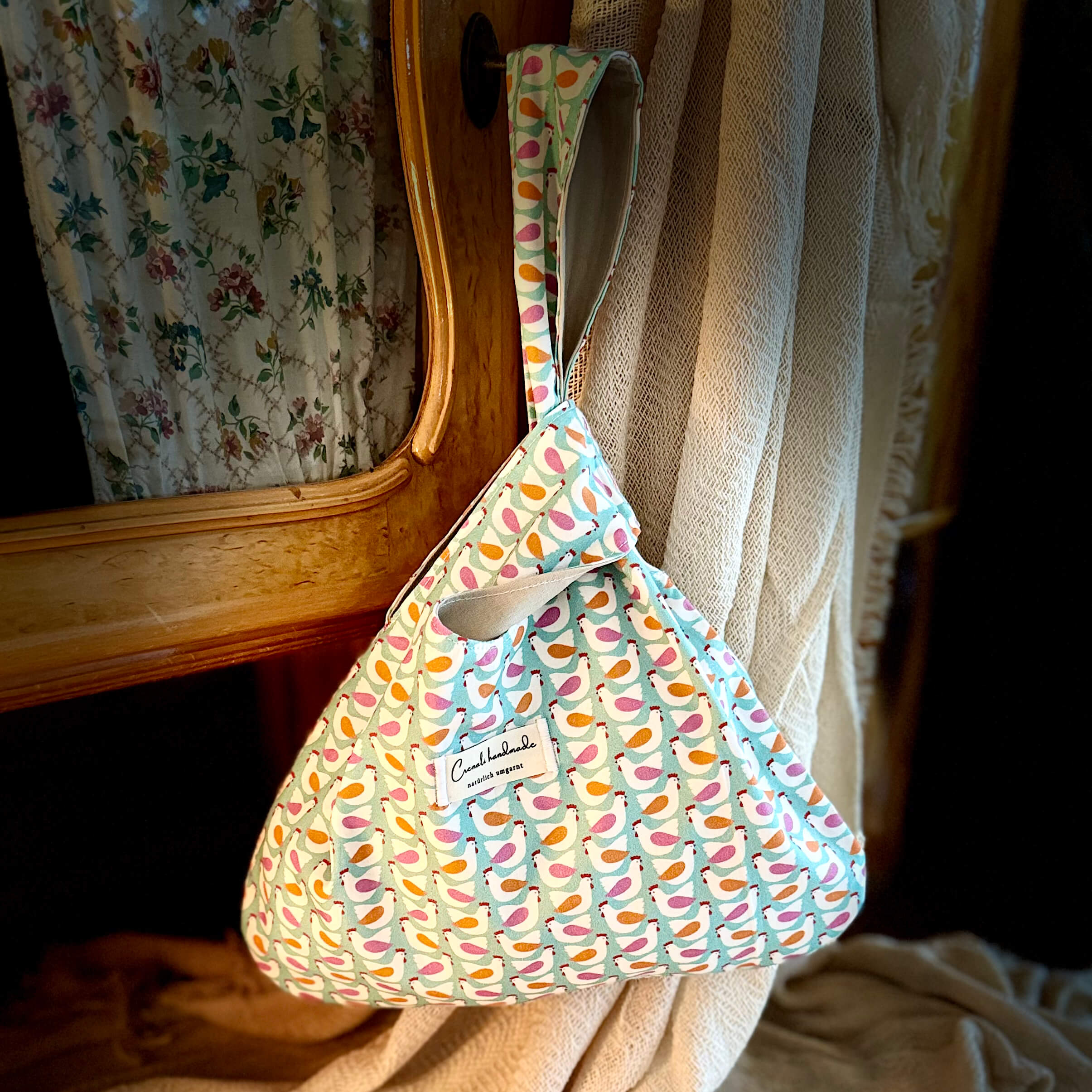 Fröhlich, verspielt und ein bisschen frech – unsere japanische Knotentasche im Design Piepmatz bringt gute Laune in deine kreative Auszeit. Handgenäht aus 100% Baumwolle (Innen- und Außenstoff) ist sie robust, leicht und angenehm im Griff.