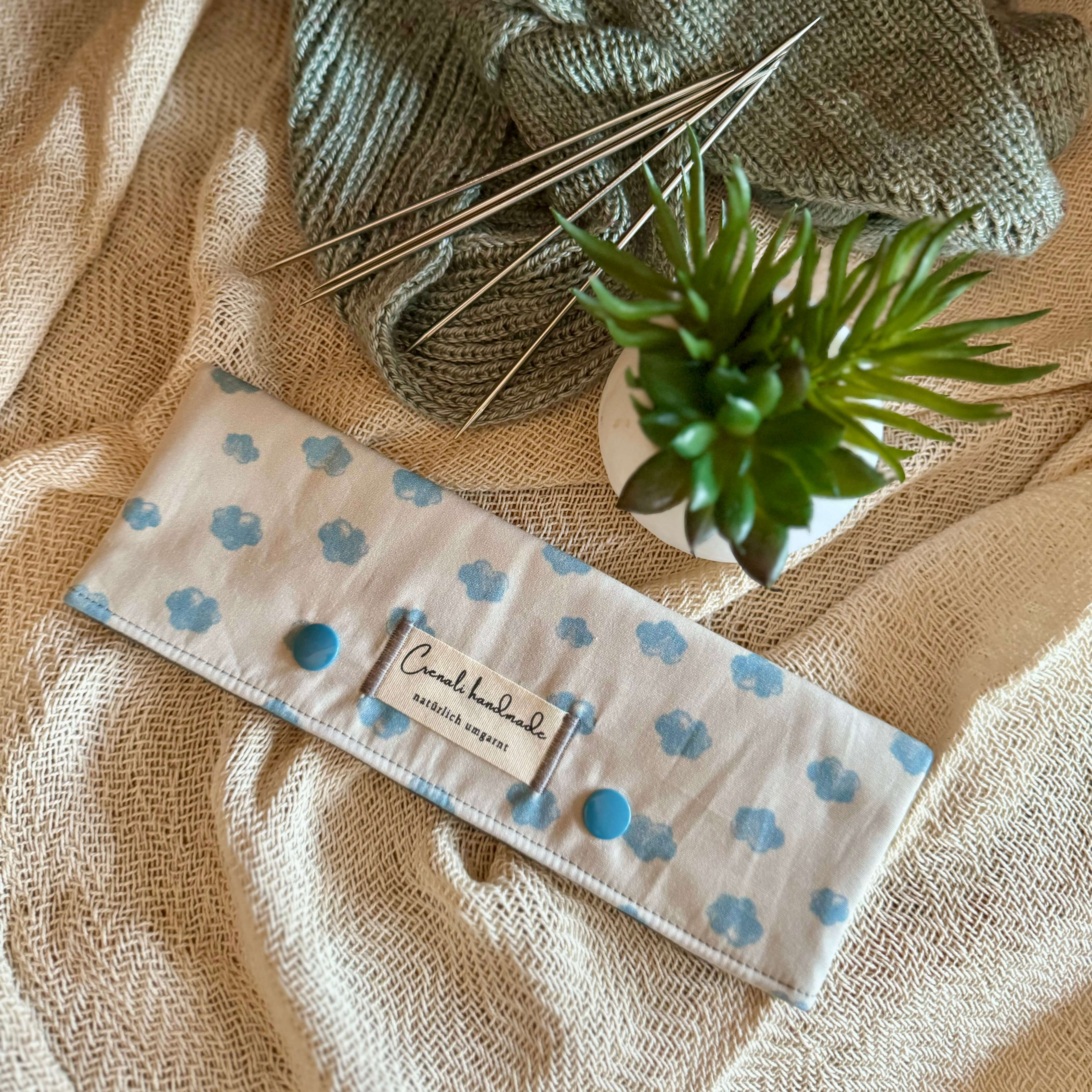 Ein stiller Himmel, ein sanftes Blau und ein Gefühl von Leichtigkeit: Die handgenähte Nadelgarage „Wolkenleicht“ bringt Ruhe in deine Projekttasche. Das zarte Muster aus kleinen, wolkenartigen Formen auf hellem Grund wirkt beruhigend und fein – wie ein tiefer Atemzug an einem klaren Frühlingstag.