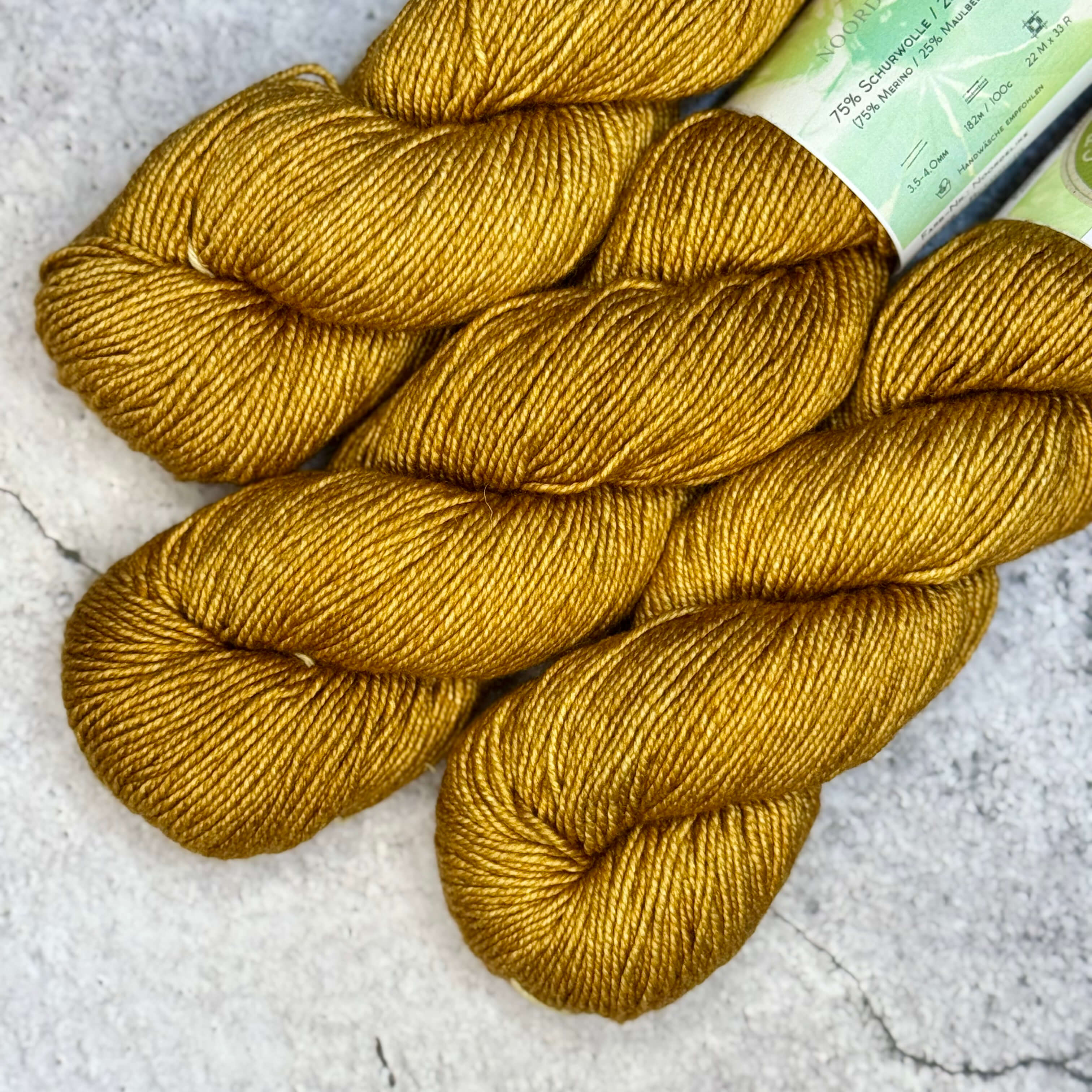 Wie alle Garne von Crenali handmade wird auch Noordelike handgefärbt und pflanzengefärbt, wodurch Bernstein seinen charakteristischen, lebendig schimmernden Farbton erhält – warm, natürlich und voller Tiefe.