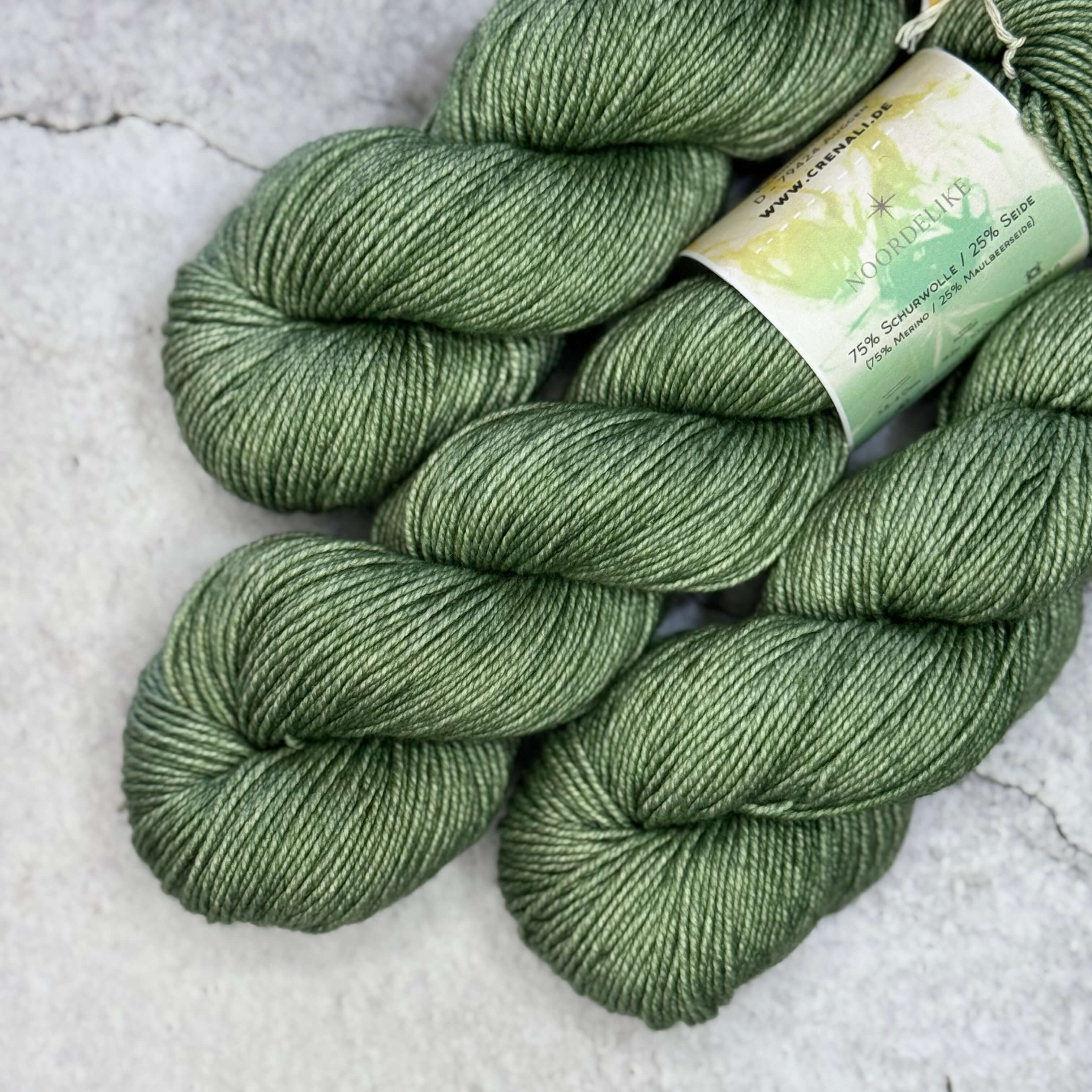 Wie alle Garne von Crenali handmade wird auch Noordelike handgefärbt und pflanzengefärbt, wodurch Farn seine frische, lebendig changierende Nuance erhält – ein Farbton, der Natur und Eleganz vereint.