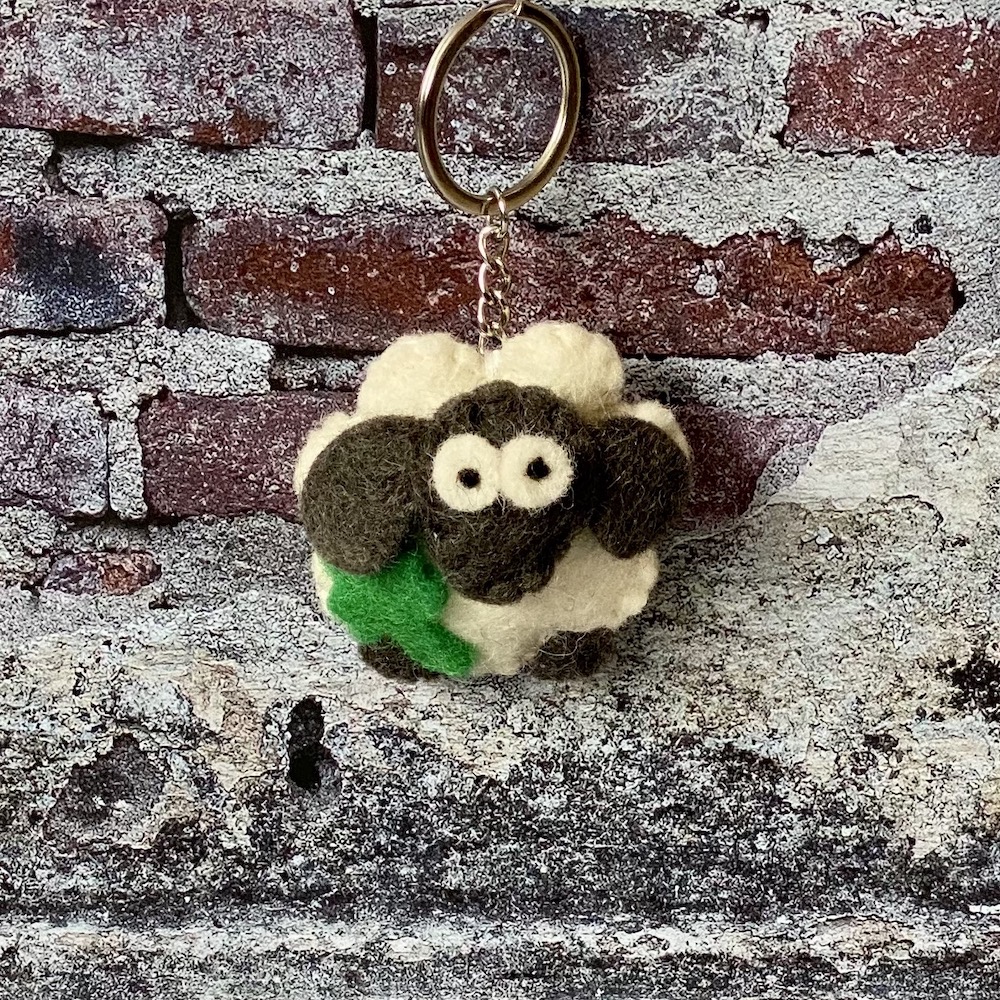 Liebevoll handgefilzte Schafe als Schlüsselanhänger mit verschiedenen Designs.
